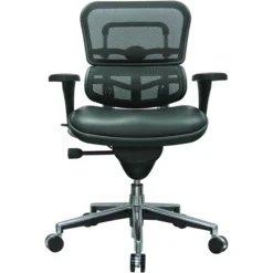 Made of leather, the seat of the Eurotech Seating Ergo Human Chair is highly comfortable. You can lock the back angle of the chair in three different positions with its 3 position tilt lock adjustment or you can also use the tilt lock adjustment to recline in your desired position. The other utilities of the chair include synchro tilt mechanism, sliding seat and pneumatic height adjustment, which in unison make the chair a perfect choice for any office. Rest your forearms on the height adjustable padded arms of the chair with ease.