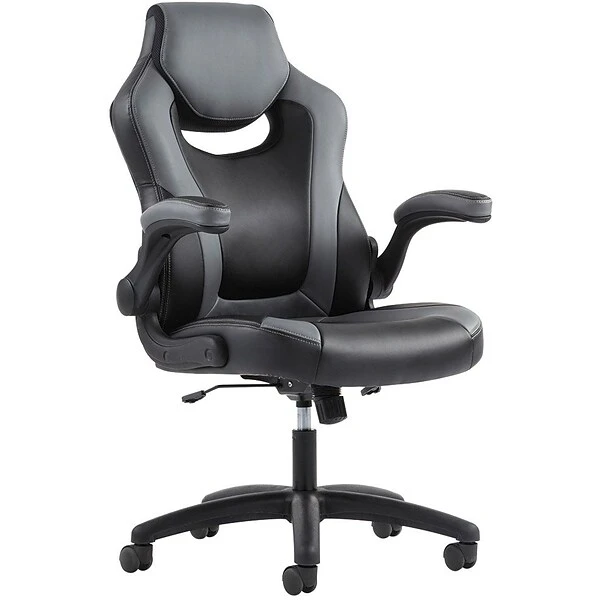 - FLIP-UP ARM GAMING CHAIR: Leather Padded arms flip down when support is desired, then quickly flip up to move out of the way