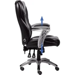 The arms of this Serta ergo-executive office chair are painted silver, giving it a classic look, and the arms’ unique shape makes them stand out in a sea of ordinary office furniture. The seat’s waterfall edge keeps your upper legs comfortable, and multisurface dual-wheel casters make rolling smooth and easy.
