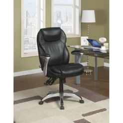 Adjust this Serta ergo-executive office chair to the task at hand. Use its adjustable tilt control to lock it into writing position, or lean it back to give your mind a quick break from long typing sessions. Tweak the lumbar support until it’s just right, and adjust back height to put the plush headrest in the right spot. Memory Foam