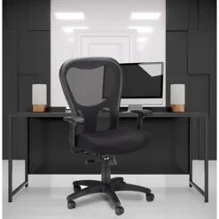 This mesh task chair is built with a Synchro tilt tension lever for easy center tilt changes. When you’re satisfied, the tilt lock prevents the chair from leaning past your chosen position. The height- and width-adjustable arms enhance ergonomics for customized comfort.