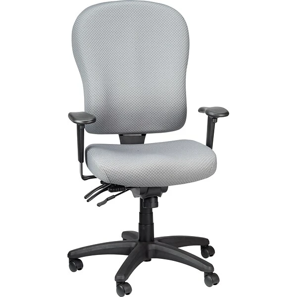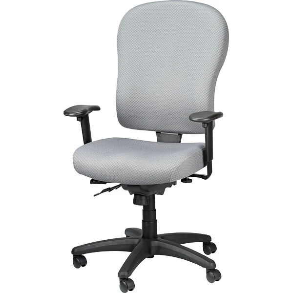 Tempur-Pedic® Ergonomic fabric mid-back task chair provides height and width adjustable arms, center tilt with lock, forward tilt and tilt tension. Chair features a grey polyester fabric upholstery seat to provide durability and extended comfort.