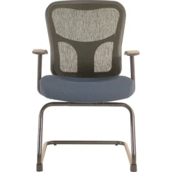 Tempur-Pedic® Ergonomic mid-back guest chair has navy colored polyester fabric upholstery with breathable mesh back for optimum user comfort. Chair measuring 35 7/8″ x 24″ x 24″ has sled base for stability and T-arms for ergonomic support.