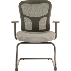 Tempur-Pedic® Ergonomic mid-back guest chair has grey colored polyester fabric upholstery with breathable mesh back for optimum user comfort. Chair measuring 35 7/8″ x 24″ x 24″ has sled base for stability and T-arms for ergonomic support.