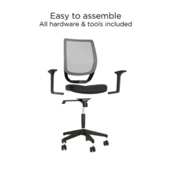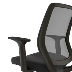 Give your office a modern style upgrade with this black task chair. The clean lines and simple silhouette evoke a contemporary design theme, and the five-star base and rolling casters deliver effortless mobility. This chair boasts a mesh back to keep you cooler as you race toward deadlines. A contoured padded seat and built-in fixed armrests offer added support for long days spent at your desk. Featuring a height adjustment lever, this Union & Scale™ Essentials fabric and mesh task chair provides convenient customization options to maximize your comfort.