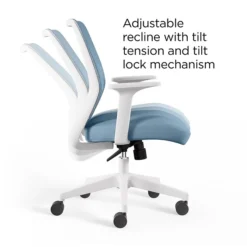 Create a comfortable work setting with this seafoam task chair. Tilt tension and tilt lock features make it easy to recline and relax between demanding projects, while the contoured seat with thick foam padding provides lumbar support throughout the workday. A mesh back delivers cooling comfort. This sturdy task chair delivers a clean, space-saving profile that works well with reception setups or cubicle stations, providing a harmonious look throughout your office space. Boasting a height-adjustable design, this Union & Scale⢠Essentials seafoam mesh and fabric task chair is easy to customize so you can find a perfect height for your workstation and computer screen, and the caster wheels roll easily from desk to printer and back again.