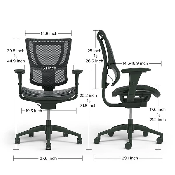 - Overall dimensions: 39.75-44.75″H x 27.6″W x 29.1″D ; Seat dimension: 16.7-20.28″H x 18.62″W x 15.55-17.13″D ; Back dimensions: 14.76″W x 26.57″D