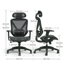- Overall dimensions: 45.3″-50.8″H x 28.2″W x 28.6″D ; Seat dimension: 16.61-20.31” H x 20.16”W x 18.35” D ; Back dimensions: 25.43” H x 19.17” W