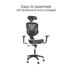 - Features adjustable seat height, height- and angle-adjustable headrest, lumbar support, tilt tension, and tilt lock