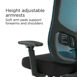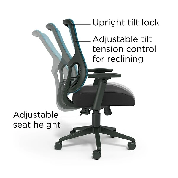 Equip your office or conference room with this task chair. A contoured padded seat cushions your body to help limit muscle aches, while a breathable mesh back directs warm air away from your body to keep you cool on hot days. The height-adjustable armrests provide personalized upper body support, while the tilt tension knob and infinity lock offer control over your back reclining angle and resistance. Adjustable lumbar lets you find the right posture for your body to help lower the risk of lower back pain. This FlexFit 100 Series Kroy blue task chair has a lever to adjust seat height for comfort and meets ANSI/BIFMA standards for workplace safety and reliability.