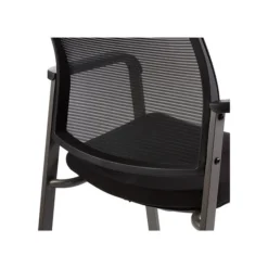 Bring a comfortable seating solution to your workspace with this mesh back stool. The contoured padded seat provides all-day comfort and support, while the breathable back allows airflow. Featuring an elevated seat height, this stool is ideal for standing height desks, cafe tables, and tall reception tables. The curved armrests offer additional support. This Prestige Esler black mesh stool has a metal frame and sturdy legs for stability and meets ANSI/BIFMA standards for quality, safety and reliable performance.