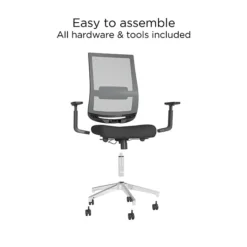 Create a functional workspace with this fabric task chair. The lumbar support accommodates the natural curve of your spine, while the adjustable seat height helps find a suitable position for proper posture. Featuring a tilt tension knob and lock, this fabric chair lets you recline and relax between tasks. Sit comfortably during working hours on the contoured padded seat, and experience a more natural reclining motion with the synchro-tilt cable seat plate. A chrome-finish base lends a professional look to your office space, while the mesh back supports free airflow. This Prestige Marrett black mesh and fabric task chair meets ANSI/BIFMA standards, making it ideal for office use, and the padded adjustable arms offer customized elbow support.