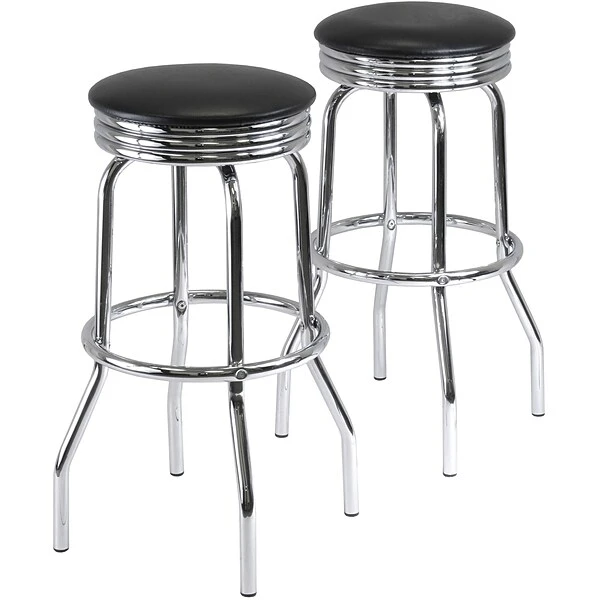 Winsome Summit swivel bar stool adds a retro style to your home decor.Stool has a polished metal construction and requires assembling.Sold as set of 2.